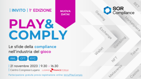 Play&Comply: 21 NOVEMBRE 2023, Centro Congressi, Lugano Finance Forum. Networking & Formazione: le sfide regolamentari nei settori del gambling e del gaming e la prevenzione del riciclaggio.